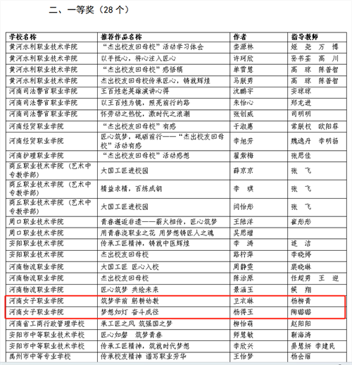近日,河南省教育厅关工委正式公布了2024年度“大国工匠进校园、杰出校友回母校”征文活动的获奖名单。我校在此次比赛中荣获了特等奖一项、一等奖两项以及二等奖两项的佳绩。