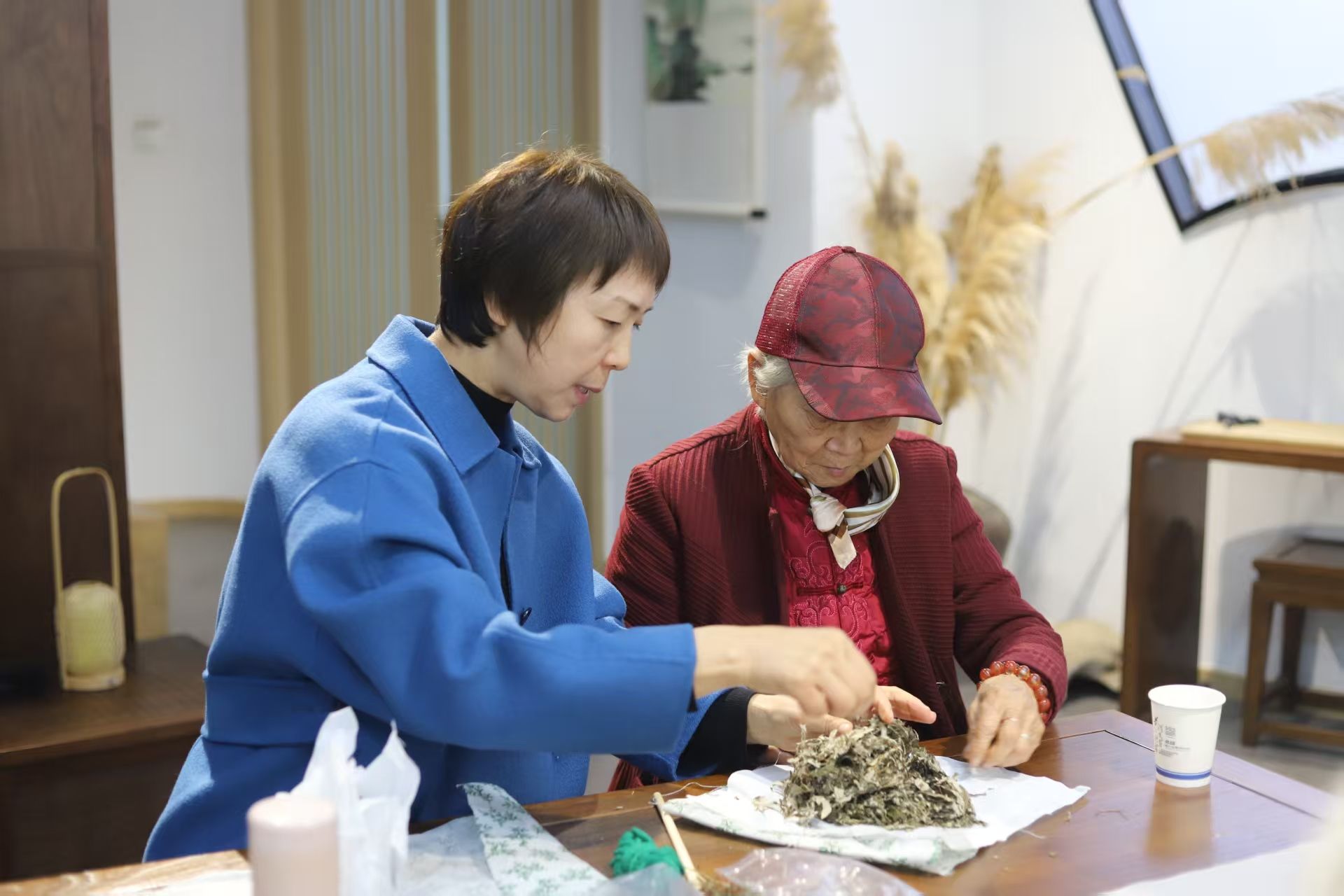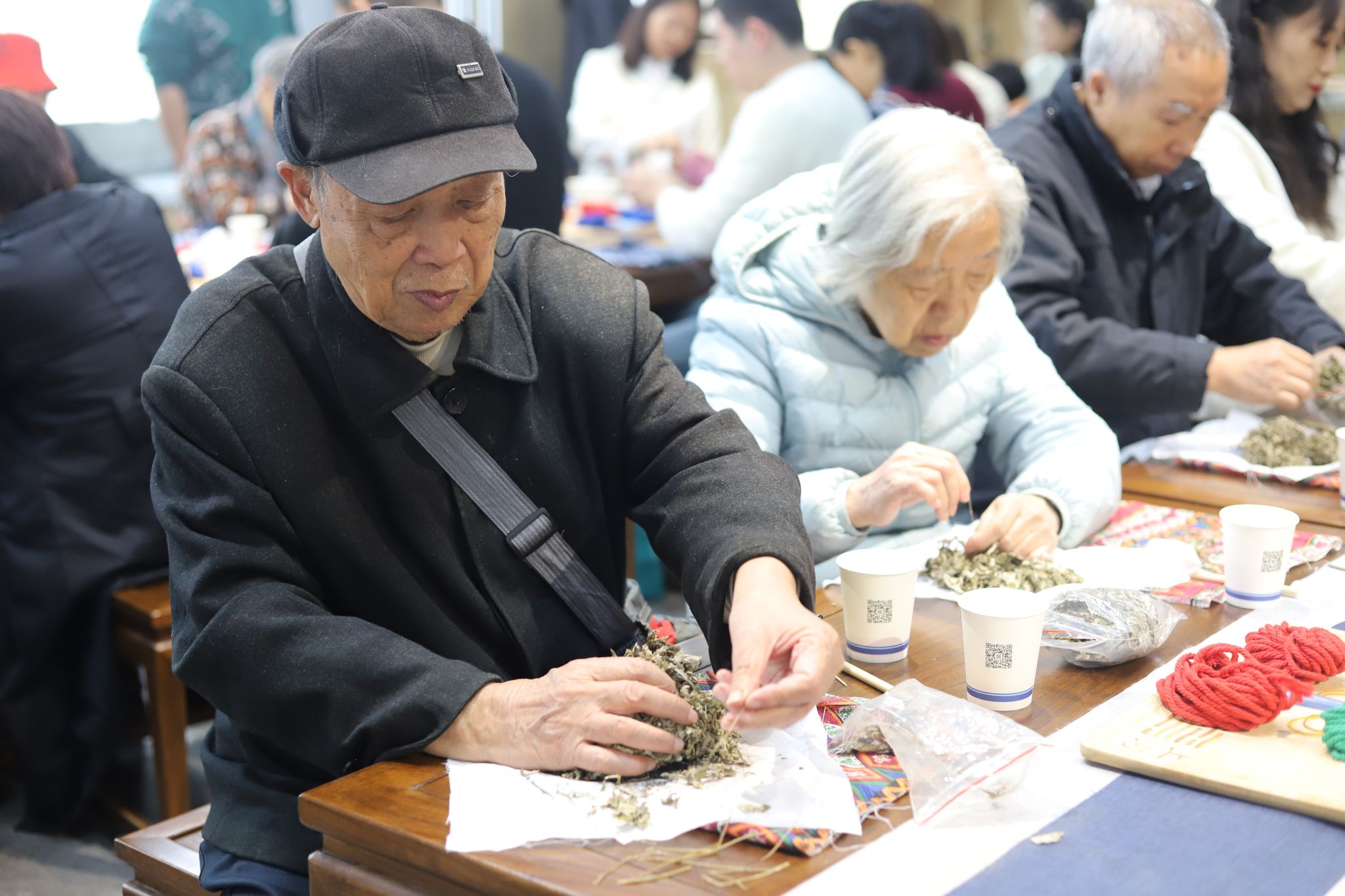 随后的手工制作艾草锤环节气氛热烈,在工作人员手把手指导下,老同志们亲手选材、填充、压实、缝制、绑紧,大家相互交流制作技巧,分享劳动带来的喜悦,现场充满了欢声笑语。