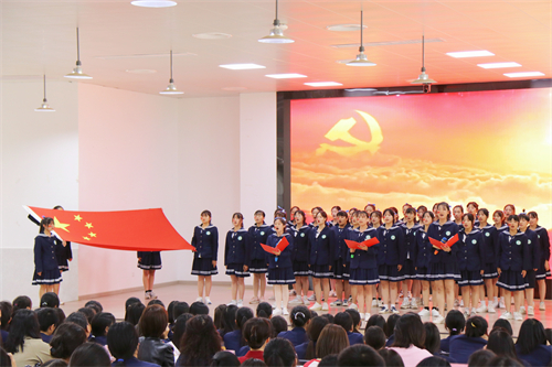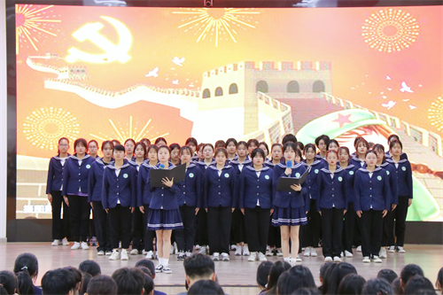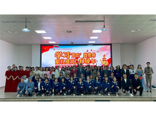 展演由教育学院同学带来的《使命如磐责任在肩》拉开序幕。随后,音乐学院、美术与设计学院、管理学院、教育学院的同学分别带来朗诵《党的100年》《党的礼赞》《歌颂建党一百周年》《回望红色经典,传承红色精神》《中国共产党——人民心中的太阳》《可爱的中国》《不朽》。展演过程气氛热烈,展示出新时代青少年昂扬向上、坚定向前的精神状态。展演结束,领导老师纷纷上台和选手们合影留念。