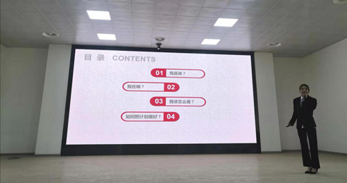 王蓓作赛前致辞。她代表学院对出席比赛的领导及师生表示欢迎,对承办赛事的河南厚溥教育科技有限公司及管理学院全体师生表示感谢。她就本次比赛的主题对大一新生的学业及职业规划提出了期望,希望通过本次比赛,大家都能给自己做一个切实可行的职业规划,并通过实践努力实现自己的人生目标。