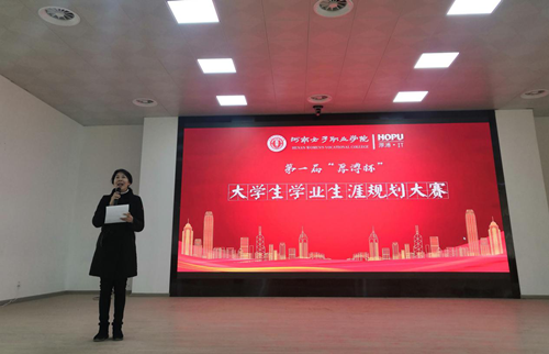为让学生对自己的大学学业生涯及职业生涯有所规划,12月4日下午,我校管理学院联合河南厚溥教育科技有限公司举办的第一届“厚溥杯”学业生涯规划大赛复赛在校报告厅成功举办。校领导郭丽萍、杨予会,教务处处长徐红娟,管理学院院长王蓓出席比赛。11名选手在初赛中脱颖而出进入复赛。