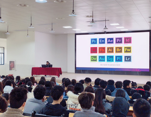 黄海老师围绕广告设计行业的发展历史、专业分类、行业未来发展趋势、对初学者的建议等方面进行了深入讲解,展示了大量优秀的设计案例。他详细分析了主流趋势作品中二维空间向三维空间方向的发展趋势、静态设计向动态设计的转变、超越视觉走向多感官信息传递的视频案例,为美院师生带来了丰富的精神食粮。