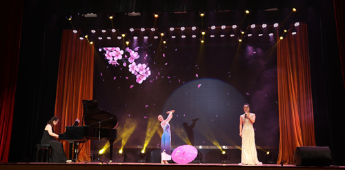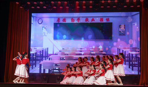 歌曲《今天是你的生日》,朗诵《逆行的背影》《等待》等激起了现场观众的浓浓爱国之情;舞蹈《望北京》《鱼儿》《还有我》等展示了我校师生扎实的舞蹈基本功与表演能力;歌舞《把一切献给党》《花》《洪湖岸边是我家》《花开新时代》等更是将美好的旋律传送到心灵深处,演绎着我校师生朝气蓬勃、奋勇前进的精神风貌。舞台上,声光交错,舞衣飞扬,诠释了女院的激情与梦想,传递了满满的正能量。文体中心里,一张张绽放的笑脸,一阵阵热情地欢呼,洋溢着欢乐祥和的气氛。