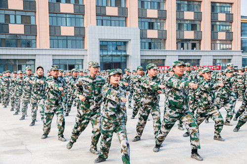 最后,校长李立峰对2020级新生的加入表示热烈欢迎,对学校的基本情况作简单介绍,对新生们在军训中展现出来的风采和取得的成果给予了充分肯定。他对学校的第一届同学提出了要求和希望:要坚定信念、开阔格局、苦练技能、与时俱进。希望风华正茂的同学们,如历经风霜而傲然挺立的青松翠柏,立定现实根底,积极学习进步,在未来的人生道路上,能蕴内秀而展雄才,遵循习近平新时代中国特色社会主义思想光辉指引,努力成长为社会主义事业的合格建设者和接班人。