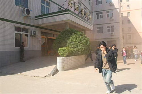 上午9:40,随着警报声的响起,消防应急逃生演练正式开始。全校师生按照预案开展了火灾疏散逃生演练,模拟实训楼因电路故障起火,应急广播马上响起,被困师生在各楼层疏导员的引导下,安全、迅速、有序地沿着预定逃生路线撤离到前操场指定区域。