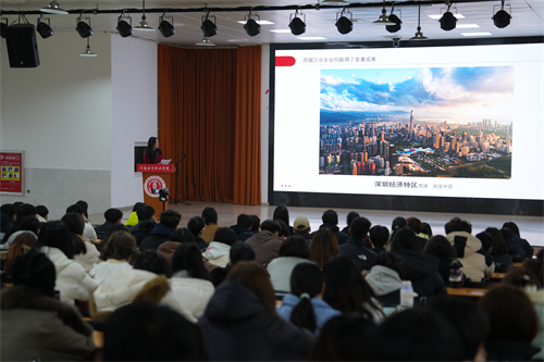 12月25日上午,我校校长郭丽萍以“以党的二十届三中全会为指引,奋进全面深化改革新征程”为题,走进报告厅为现代服务与管理学院和财经商贸学院2024级相关班级讲授思政课。郭校长深入解读党的二十届三中全会精神,激励广大青年学生积极投身改革浪潮,以实际行动践行改革精神,为以中国式现代化全面推进中华民族伟大复兴贡献青春力量。在讲授中,她巧妙运用红歌串联起国家发展中的重大事件,为现场师生呈现了一场别开生面的思政盛宴。
