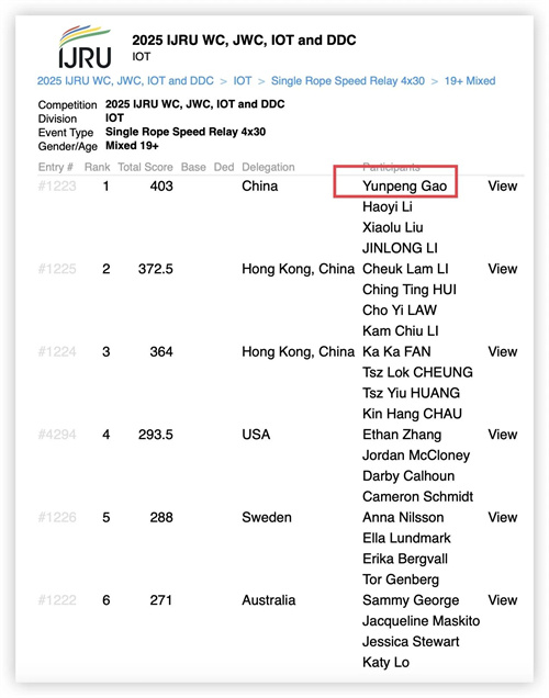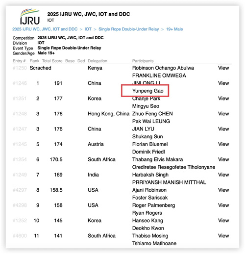 7月25日至8月4日,2025年世界跳绳锦标赛在日本川崎举行,我校体育与健康学院学生高云鹏斩获公开组19+男子双摇接力和混合组4×30秒单摇接力两项冠军,并在混合组两人同步花样项目中取得第五名。同时,也是我省在该领域的重要突破。