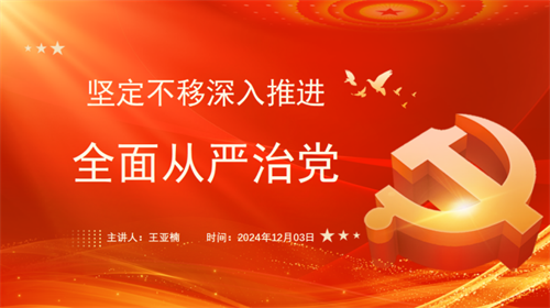 12月3日下午,纪委书记王亚楠以《坚定不移深入推进全面从严治党》为主题,为财经商贸学院入党积极分子与团学干部上了一堂深刻的思政课。此次课程旨在深入贯彻落实党的二十大精神,进一步加强党的建设,坚定不移推进全面从严治党。