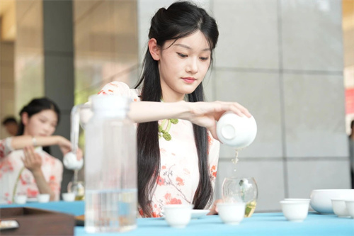 温杯、投茶、注水、出汤……细腻的动作搭配优雅的姿态,将茶叶的特性、冲泡技巧与美学艺术完美融合,诉说着茶的故事,展现了“茶器、水、境、艺”和谐之美的同时,完成了茶道的交流与传承。