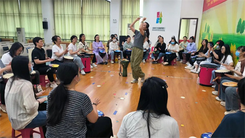 活动现场气氛热烈,老师们积极投入、互动频繁。胡多歌名师工作室团队以专业的知识、生动的示范和极具感染力的教学方式,让理论与实践深度融合。参与活动的教师纷纷表示,此次教研不仅拓宽了音乐教学视野,更掌握了鼓圈与奥尔夫音乐活动的实操技巧,对其在课堂教学、学生心理疏导中的应用有了全新启发。