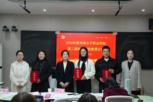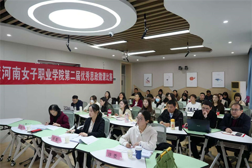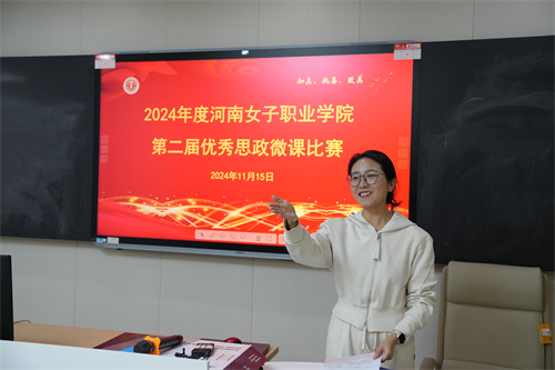 为深入贯彻党的二十届三中全会精神,落实中共中央、国务院《中国教育现代化2035》和教育部《教师数字素养》标准,扎实推进信息技术与思政教育的深度融合,马克思主义学院于2024年11月15日在南校区智慧教室顺利举办2024年度河南女子职业学院第二届优秀思政微课比s赛