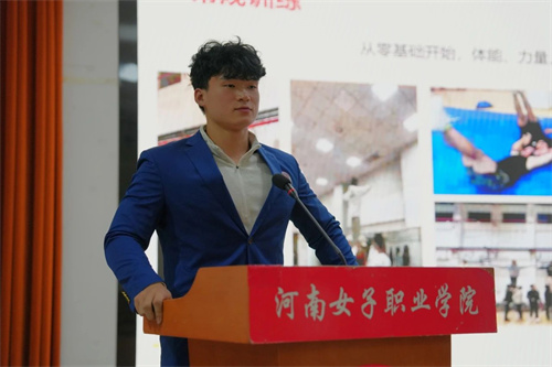 河南省第十一届学生健美操啦啦操——小集体技巧乙组冠军、2024年河南省体育模特锦标赛职业精英成人男人B组特等奖、职业精英团体组特等奖代表朱福州以《信念》为主题分享到,信念,是一种力量,是团队的精神支柱,是团队团结的纽带。在漫长的训练和竞赛中,我们都会遇到各种困难和挫折,信念能让我们努力拼搏、无所畏惧。他表示今后的训练和比赛中,将继续以坚定的信念为指导,不断提高自己的竞技水平,为学校荣获更多荣誉。