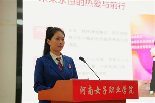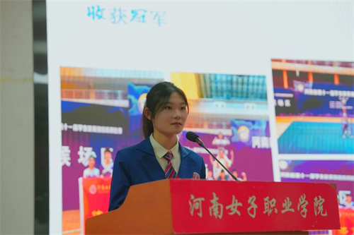 河南省学生运动操舞系列总决赛——排舞原创动作、规定动作冠军代表高雨青以《坚韧成就梦想》为主题分享了自己的成功经验。成功的路永远不会是一帆风顺的,但是坚韧的意志、不懈的追求以及对专业更深层次的理解和热爱才是冠军之路的主旋律,展现了我校青年激情活力、拼搏奋进的榜样形象。