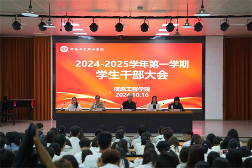 为了进一步强化团学、班级学生干部队伍建设,全面提升学生干部的综合素质与能力,10月16日,信息工程学院在北校区报告厅召开2024-2025学年第一学期学生干部大会。学院领导、辅导员和全体学生干部参会。