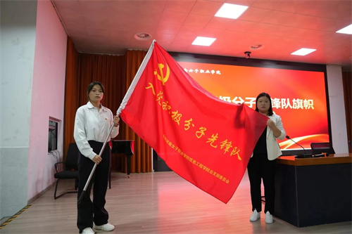信息工程学院党总支书记刘春伟为2023级入党积极分子先锋队授予旗帜,这面鲜艳的旗帜是对他们政治觉悟和思想品质的认可,也是对他们未来继续发扬先锋模范作用的期许和鼓励。