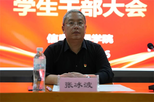 信息工程学院院长张冰波发表讲话。他围绕“什么是学生干部”、“为什么要做学生干部”以及“怎样当好学生干部”三个问题,告诉同学们学生干部不仅是学院的骨干力量,更是广大学生的表率和榜样。希望大家能够珍惜荣誉,不负重托,勇于担当,积极作为,为学院的发展贡献自己的智慧和力量。