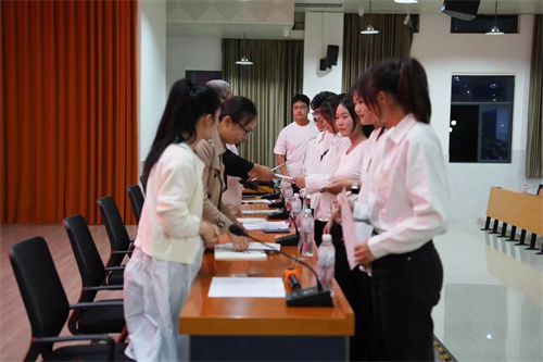 学院领导为2023级的辅导员助理们颁发聘书。此次颁发聘书仪式,不仅是对她们过去一年辛勤工作的肯定,更是对他们未来能够继续投身学院建设,不断贡献智慧和力量的殷切期望。