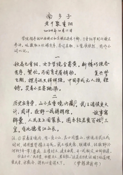 金秋送爽,丹桂飘香。10月11日,我校离退休工作处携手关工委组织离退休教职工参观新校区并游览同盟古镇,让老干部们深切感受学校近年来的发展成就与乡村振兴的蓬勃生机。三十余名老干部参加。校党委书记李立峰,校长郭丽萍,副校长曹晖,副书记马立等陪同参观。