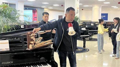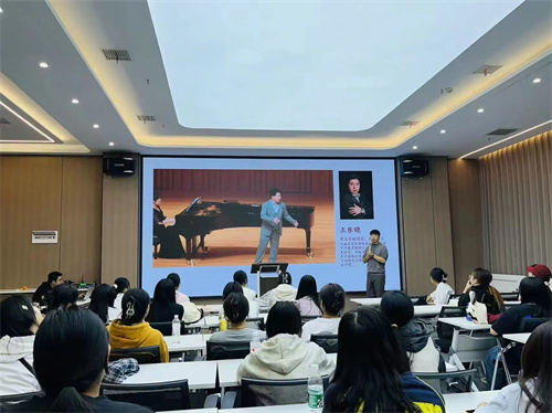 虹韵乐器执行总经理张宸硕就钢琴及各类民乐的制作、维修以及销售和同学们进行了耐心细致地介绍,让同学们对乐器的制造、维护和销售整个流程有了全面的认识。