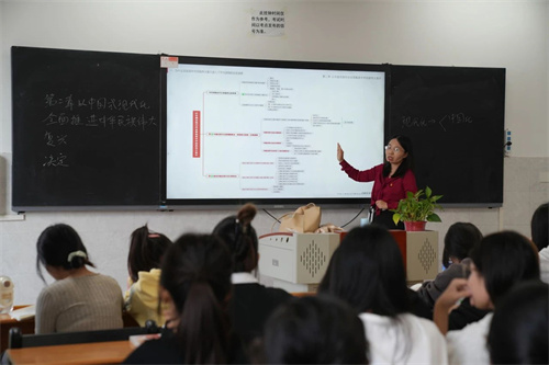 高金慧“以中国式现代化全面推进中华民族伟大复兴”为专题,将党的二十届三中全会精神深入融合于教学内容。以学生思政实践微视频作品为导入,激发学生兴趣,唤起学生对实现中华民族伟大复兴中国梦的责任意识,进而清晰阐释中国式现代化是强国建设、民族振兴的唯一正确道路。李佳颖以“中国特色社会主义进入新时代”到“新时代的大学生要以民族复兴为己任”再到“大学生应提升自身的思想道德素质和法治素养”为逻辑结构,深入浅出地回应了学生所关注的“身处新时代的大学生应该如何成长为中国特色社会主义事业的合格建设者和可靠接班人”这一重要议题,引导学生做有理想、敢担当、能吃苦、肯奋斗的新时代好青年。