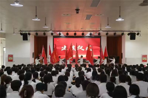 现代服务与管理学院将学院名称和七个专业名称,镌刻在一面面红旗上,由英姿飒爽的旗手们护送出旗。旗帜引领方向,旗帜凝聚力量,它们将激励着2024级新生们在各自的专业领域中努力学习、拼搏奋进。