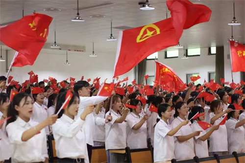 今年是新中国成立75周年,仪式最后全体师生合唱《歌唱祖国》。激昂的旋律在报告厅上空回荡,每一个人手中挥舞的国旗和嘹亮的歌声都表达着对祖国的热爱和对美好未来的憧憬。歌声激昂,情感真挚,将整个开学仪式推向了高潮。