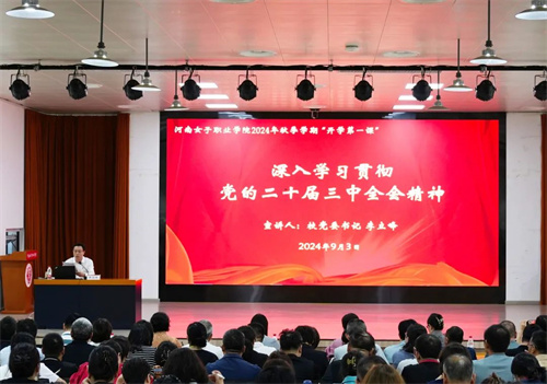 9月3日,校党委书记李立峰以“深入学习贯彻党的二十届三中全会精神,为教育强国建设挺膺担当”为主题,面向全校师生讲授2024年秋季学期“开学第一课”,深入宣讲党的二十届三中全会精神,引导广大师生深刻领悟“两个确立”的决定性意义,增强“四个意识”、坚定“四个自信”、做到“两个维护”,切实把思想和行动统一到党中央决策部署上来,坚定全面深化改革的历史自信,持续深化教育综合改革,奋力开创学校事业高质量发展新局面。