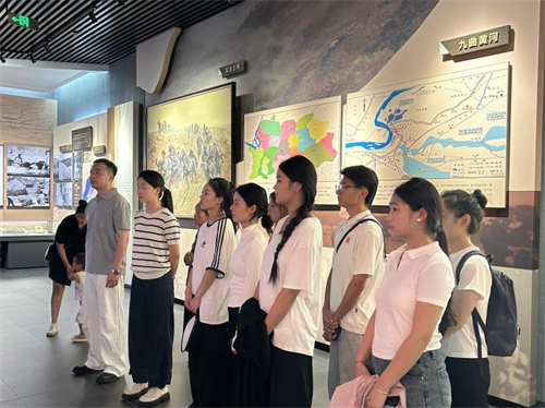 第五站,实践队成员来到了兰考县黄河湾风景区。团队成员们被黄河湾的壮阔景象所震撼,随后,参观了毛主席视察黄河纪念亭。站在纪念亭前,团队成员们仿佛穿越时空,感受到那份来自半个多世纪前毛泽东同志深切关怀人民群众生活、亲自考察治理黄河的温暖与力量。