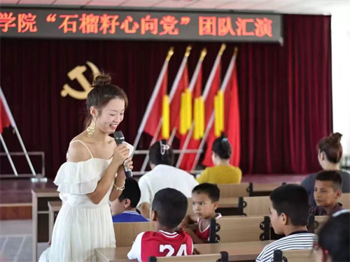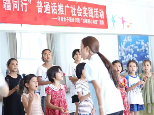 在推普实践中,实践团成员们进行了推普实情调查,详细询问当地学生、群众学习普通话的途径和方式,了解学习过程中遇到的困难,为针对性地制定推普的方法提供依据。校团委教师郑梦凡带领学前教育学院学生栗饶萌认真制定教学方案,以“同声同心,同讲普通话,同传中国情”为目标,分别采用“推普+快板、推普+情景剧、推普+秧歌”等方式,为当地孩子们带来了一场场别开生面的推普课堂。通过诵读经典故事,继承发扬中华优秀传统文化,引导孩子们从中汲取养分和能量。
