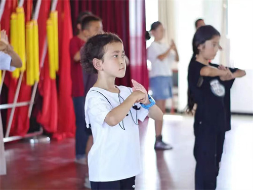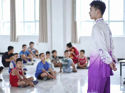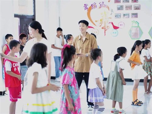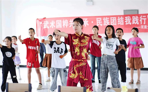 在武术课堂上,体育学院教师时梦及体育学院学生焦舒瑞、张豫翔、冯丹妮带领当地孩子们做热身准备,学习马步、弓步等基本腿法,举例讲解“抱拳礼”“注目礼”等基础武术礼仪。队员们耐心示范,手把手地纠正孩子们的动作,让他们在反复练习中掌握正确的姿势和发力方法。为了让学生们更好地感受武术的魅力,团队成员针对《少年拳》开展了系统教学。伴随着一声声铿锵有力的“嘿、哈”声,一次次整齐划一的出拳动作,不仅让学生们感受到了中华传统文化的魅力,还为他们的成长注入了新的活力。