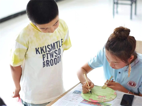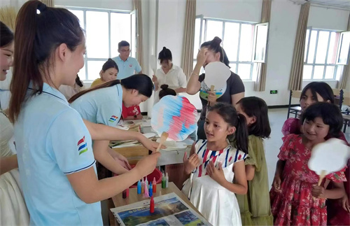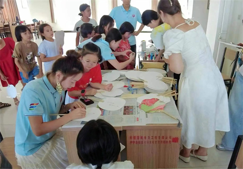 为传承弘扬中华传统文化,团队成员特开展“‘漆’彩匠心、国潮团扇”漆扇制作活动。活动伊始,财经商贸学院学生臧研、现代服务与管理学院学生左振涛对漆扇的类型、历史起源、发展过程等方面进行详细描述。随后,学前教育学院学生李雨辰为孩子们详细演示制作漆扇的步骤,大家逐渐掌握了制作技巧。在制作过程中,孩子们积极参与,充分发挥自己的想象力和创造力,制作出一把把独一无二的漆扇。通过制作漆扇,当地的孩子们不仅了解了非遗文化,感受到非遗文化中的东方美学、民族韵味,还体验到制作漆扇的乐趣。