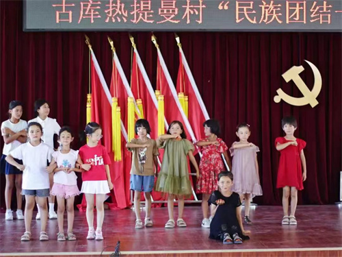 在本次活动即将结束之际,村两委和“石榴籽心向党”团队精心筹备,成功举办了河南女子职业学院“石榴籽心向党”文艺汇演活动。10个文艺节目汇聚了多民族元素,其中包含哈萨克族舞蹈、秧歌、武术、情景剧、快板等各类精彩节目。整场演出大家热情高涨,欢呼不断,其中手势舞《国家》、武术《少年拳》、情景剧《丰碑》、哈萨克族舞蹈《黑走马》等节目,更是将现场推向一个又一个高潮,种下团结“石榴籽”,浇灌民族“幸福花”。本次汇演,用“石榴红”的赤子之心为党献礼,在实际生活中推动铸牢中华民族共同体意识在新疆大地根深花开。