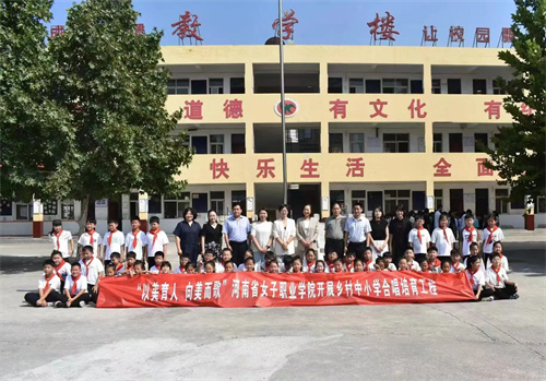 为推动河南省乡村中小学美育高质量发展,带动、扶持乡村学校开展合唱活动,努力缩小城乡美育差距,8月30日上午,音乐与传媒学院赴新密市曲梁镇下牛中心小学,开展河南省教育厅乡村中小学“以美育人 向美而歌”合唱培育工程相关活动。音乐与传媒学院院长胡多歌、党总支书记王娜,带领帮扶团队参加启动仪式。启动仪式由新密市曲梁镇中心校校长樊建平主持,新密市教育局副局长赵彦奇、艺术科科长陈宏、下牛中心小学校长马永都及曲梁镇全体音乐教师参加此次活动。