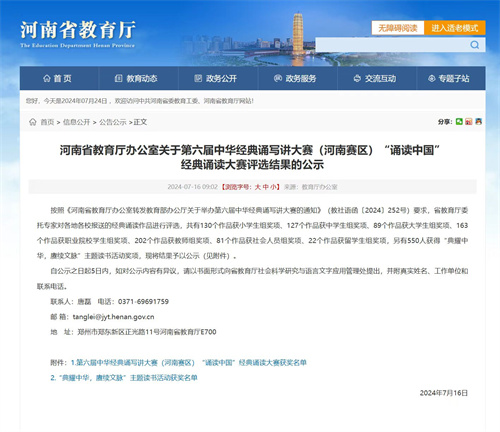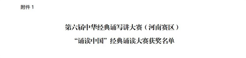 近日,河南省教育厅公布第六届中华经典诵写讲大赛(河南赛区)“诵读中国”经典诵读大赛评选结果。我校两部作品《丰碑》和《不朽》均获职业院校组一等奖。