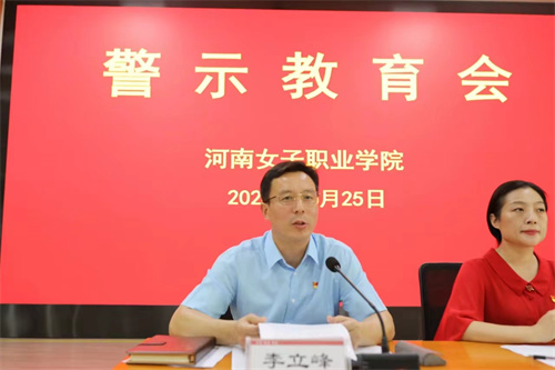 6月25日下午,我校在北校区报告厅召开党纪学习教育警示教育会,校党委书记李立峰出席并讲话。校领导班子成员,校直各单位内设中层科级以上干部及全体党员参加会议。校长郭丽萍主持会议。