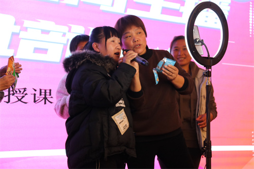 课堂上,程老师让学员们分组上台进行直播带货实战演练,一边指导学员们的实操,一边讲解直播准备、话术互动、产品讲解技巧、直播平台运营、直播复盘、宣传短视频拍摄与制作技巧等课程内容。学员们对直播带货实操非常感兴趣,争相上手带货实操,学习热情高涨。