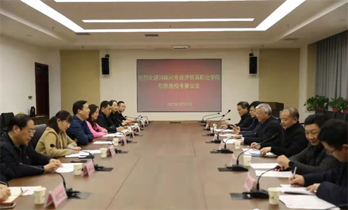 12月1日,河南对外经济贸易职业学院校长石国华一行6人来访,与我校展开友好交流。校长郭丽萍主持座谈会。