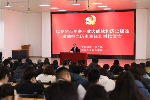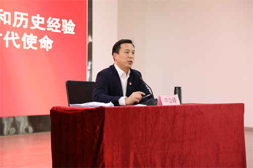11月23日下午,“书记开讲——校党委书记讲党课”活动在北校区报告厅顺利开展。校党委书记李立峰讲授“以党的百年奋斗重大成就和历史经验,激励担当历史责任和时代使命”主题党课,校长郭丽萍,纪委书记、工会主席王亚楠,副校长曹晖,校长助理杨予会出席活动,全体在职党员及行政人员参加活动。