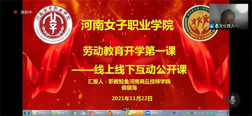 为了全面落实立德树人根本任务,加快构建德、智、体、美、劳全面培养的教育体系,充分发挥劳动教育的综合育人作用,11月22日,我校南北校区开展了云端劳动教育第一课活动,邀请江苏徐州技师学院学生处处长韩春卉和商丘技师学院劳动教育专家侯银海老师作为主讲。学院南北校区近6000人参加了本次讲座。