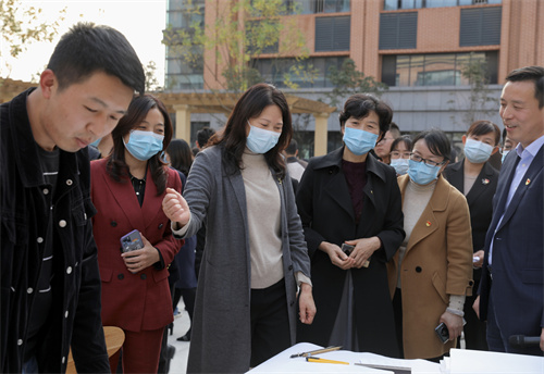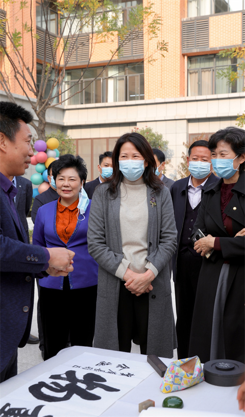 霍金花十分关心校园建设和发展,先后走进图书馆、艺术楼等进行实地考察。在图书馆前广场,霍金花与正在参加“河南女子职业学院第二届‘书香溢满校园’书画笔会”的现场师生亲切交谈,认真观看书法老师执笔泼墨,询问活动开展、书法课程开设情况等。在艺术楼,霍金花走进舞蹈实训室、钢琴房,查看实训实践设施,详细了解相关专业技能训练情况。