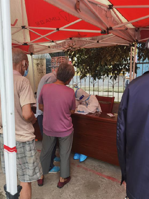 此次权寨镇核酸检测采集共有10多名志愿者参与其中,他们中有医护人员、有镇政府工作人员、还有有放假回来的大学生……志愿者们分为上下午班和全天班,上下午班平均每人工作4~6小时,全天班平均工作7~9小时。全天班的志愿者们只有中午短暂的10分钟吃饭时间,着急的吃饭完之后,又投入到工作中,一直持续到下午6点多。
