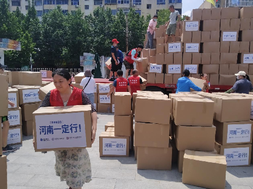 水灾无情人有情,为了援助受灾群众,及时把救灾物质运送到灾区。7月27日,徐红娟老师再次担任志愿者,从上午十点到下午一点半,奋战几个小时,搬运救灾物资,为灾区人民奉献爱心,为河南早日战胜水灾贡献一份力量。
