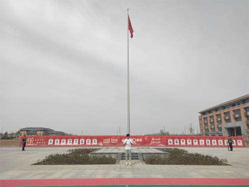 早上8点,雄壮激昂的国歌准时奏响,旗手振臂一挥,鲜艳的五星红旗冉冉升起。全体师生庄严肃立,向国旗行注目礼,齐声高唱国歌,表达了对祖国的热爱,同时也展示了学院师生积极向上、团结进取的精神风貌。
