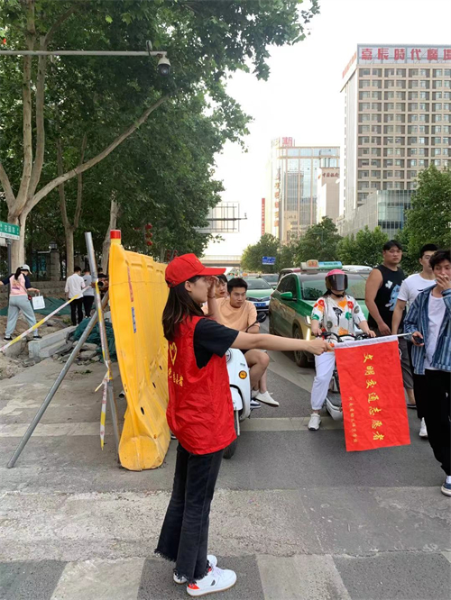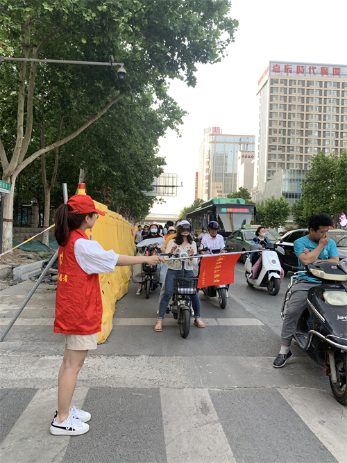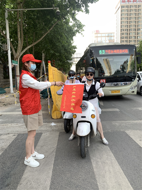 为了进一步弘扬志愿服务精神,倡导市民文明规范出行,积极开展“我为群众办实事”实践活动,5月28日,我校党委宣传部组织党员教师志愿者,在非机动车和人流量比较大的花园路与丰产路交叉路口进行“文明交通执勤”志愿服务活动。