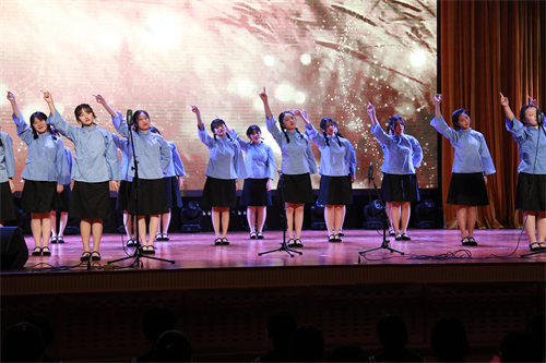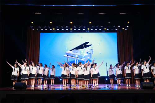 演出在悠扬婉转的校歌《菁菁校园》中拉开了帷幕。优美动感的旋律,宛如天籁的歌声证明了学生们不俗的歌唱实力。伴随着阵阵掌声,《哆来咪》《送别》《你笑起来真好看》等14个精彩的节目为观众呈现出一场酣畅淋漓的视听盛宴。由肖登丰老师领唱、全体学生表演的合唱《大海啊故乡》,将现场气氛推向了高潮。