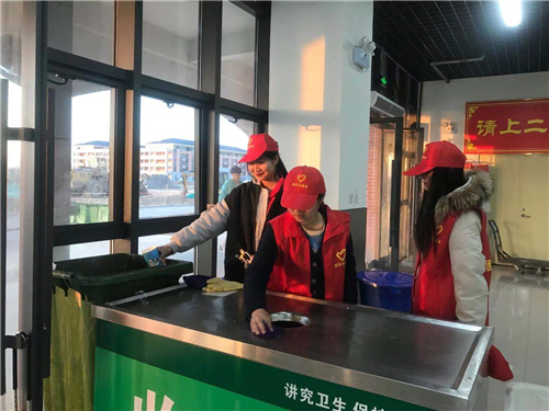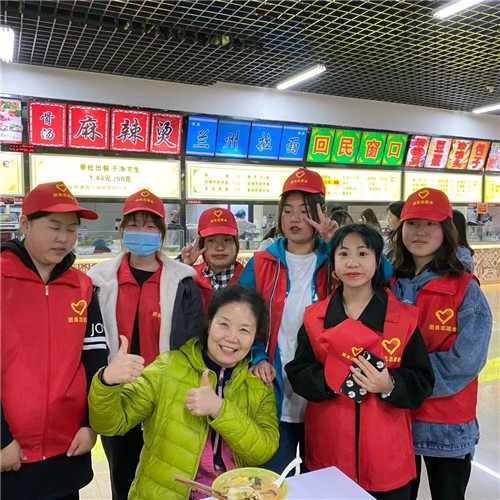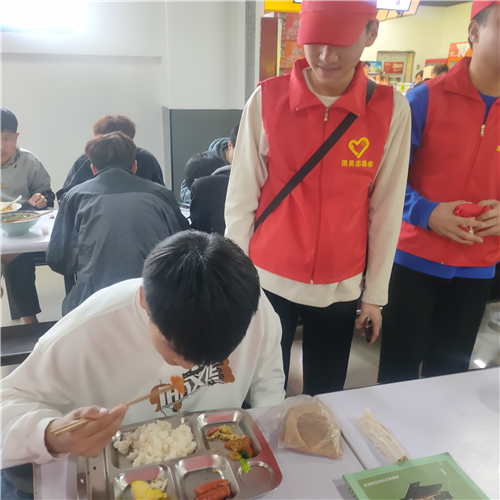 同学们身着志愿者服装,精神饱满,状态积极。在各自的分工岗位上认真完成任务,向身边人宣传光盘行动的意义,食堂内到处可以看到我院志愿者忙碌的身影。