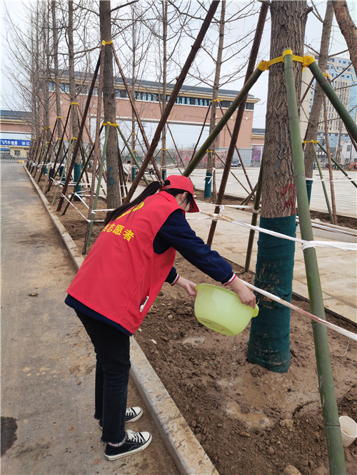 今年是全民义务植树活动开展40周年,为增强同学们植树造林、绿化环境、美化生活的意识,倡导大家养成低碳环保生活的理念。3月12日上午,我校团委在校园里开展“共建绿色校园”志愿者活动。