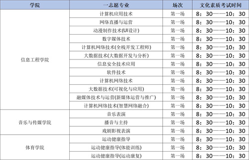 注:因各专业文化素质考试时间变更,请考生认真查看准考证上职业技能考试时间安排,提前到达考试地点。