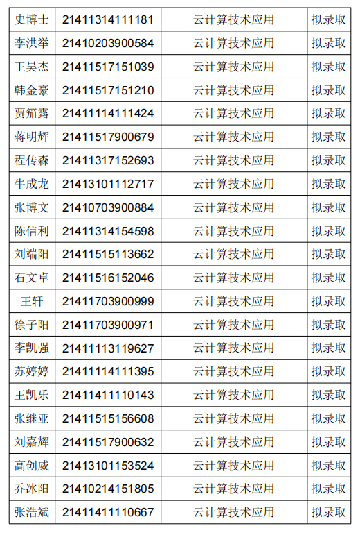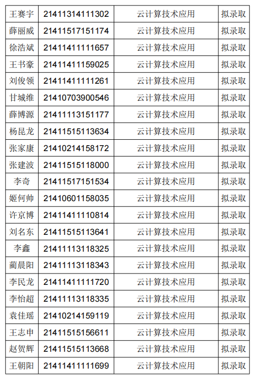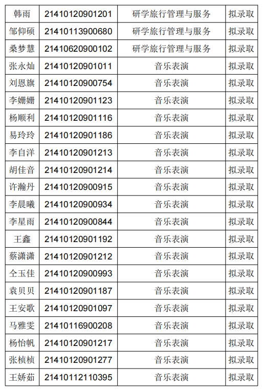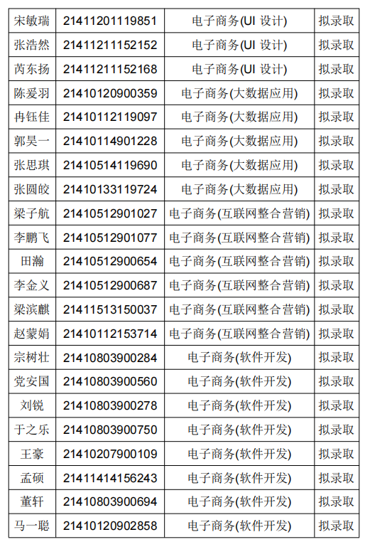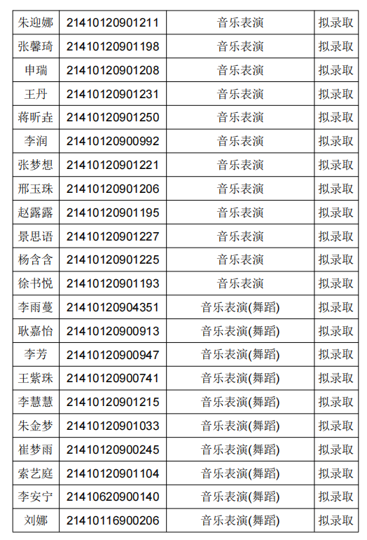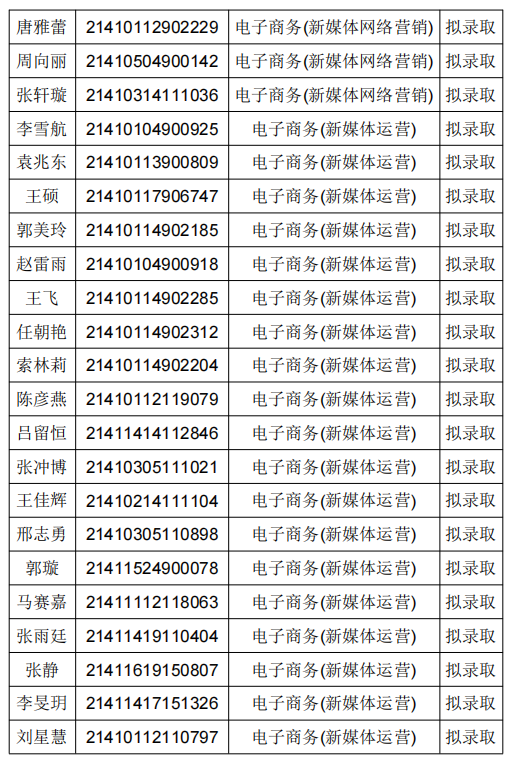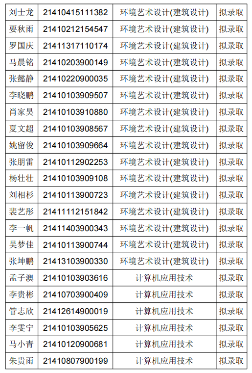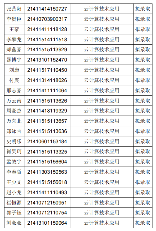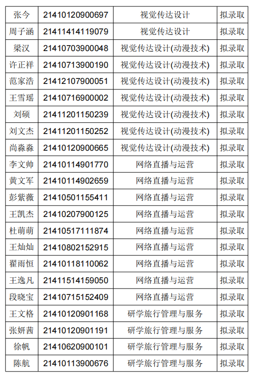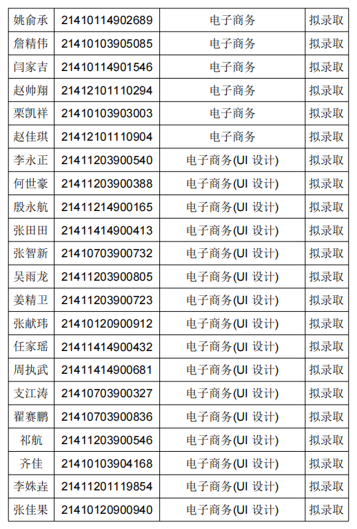 拟录取名单公示
