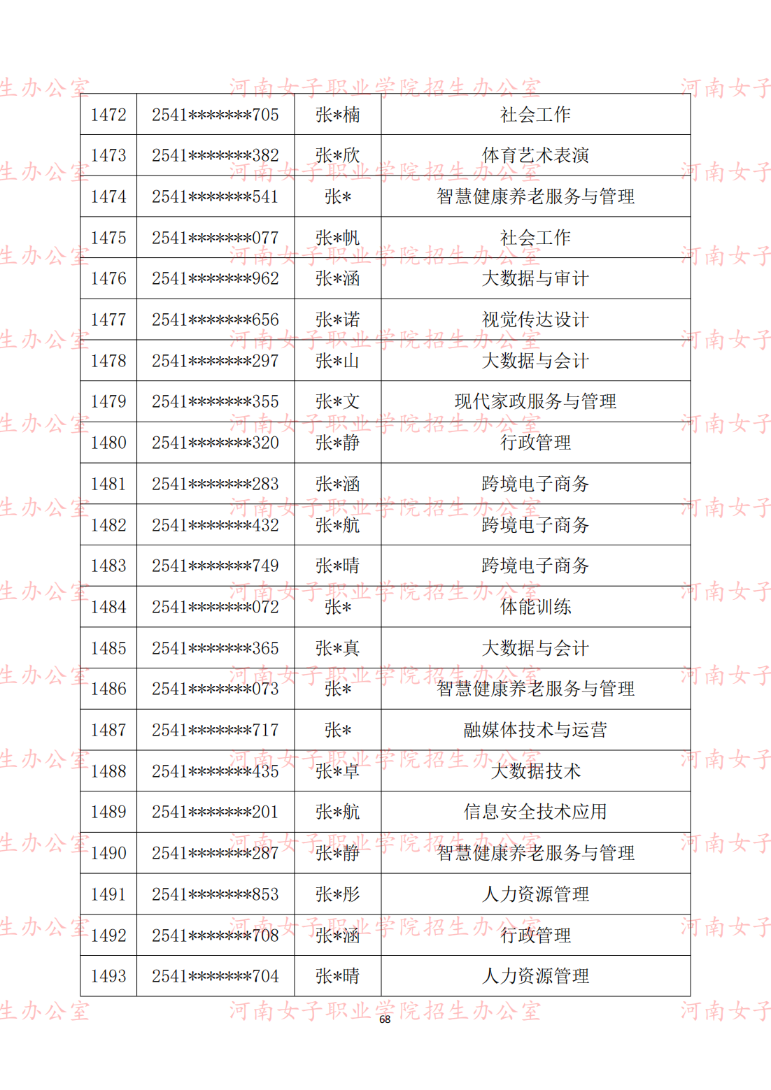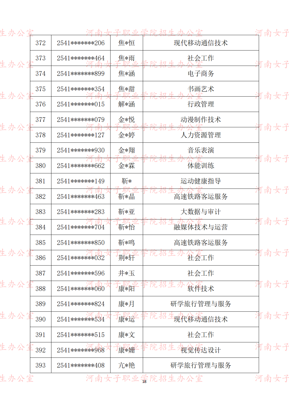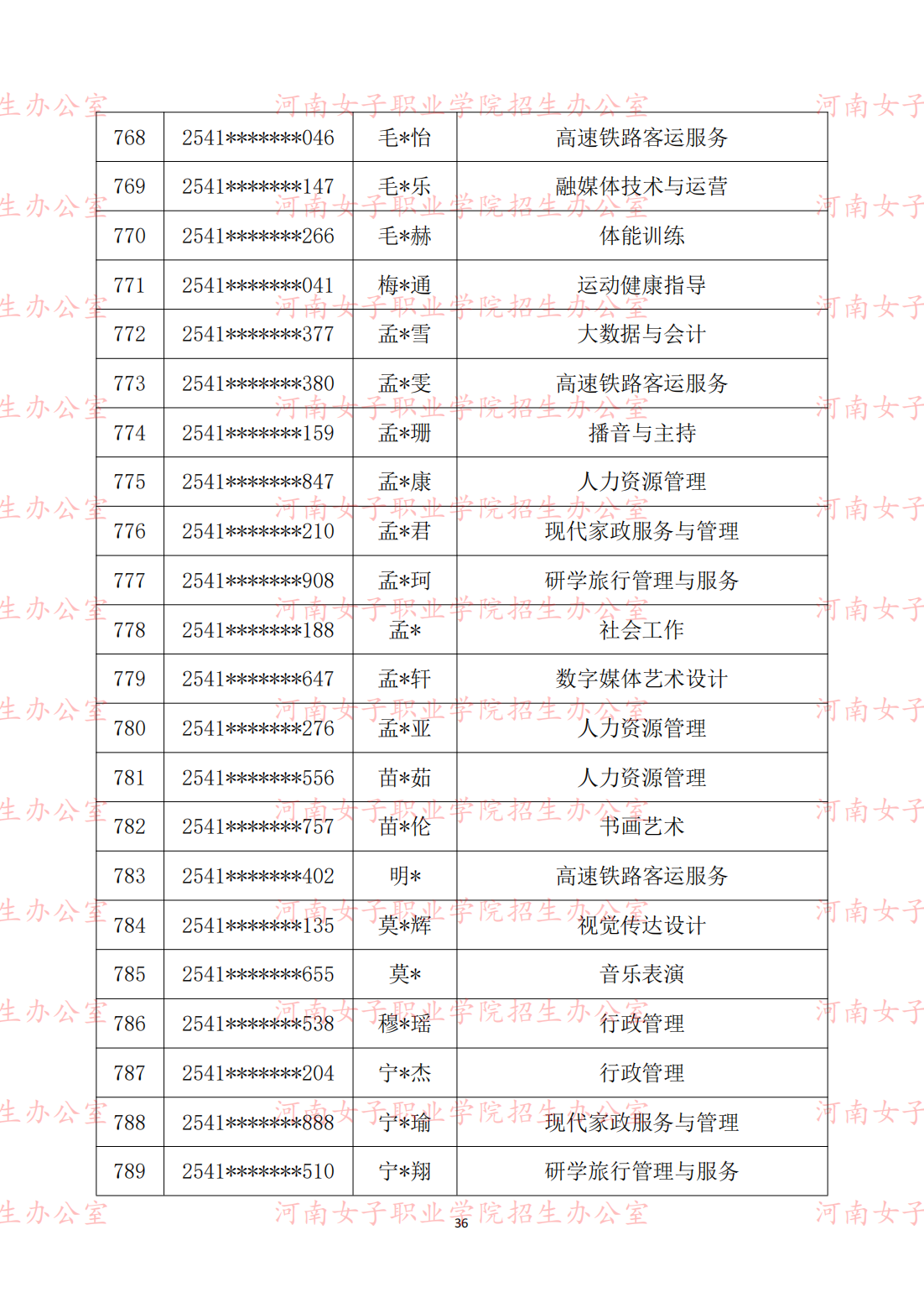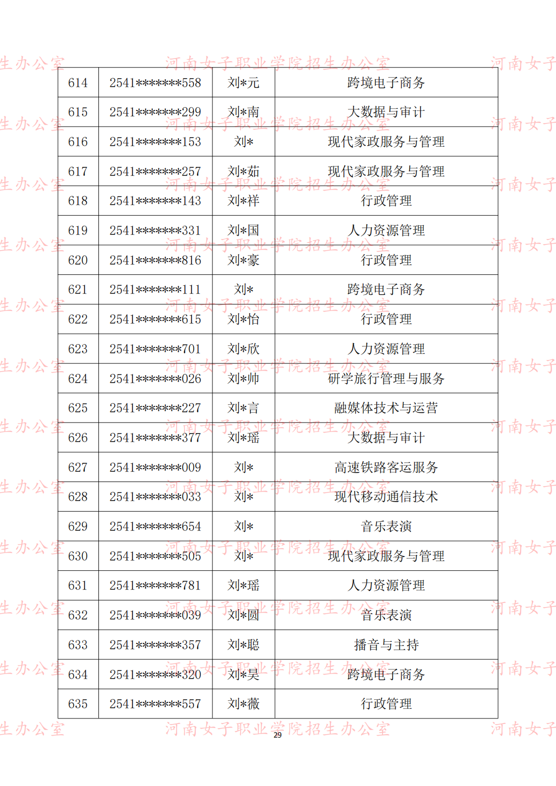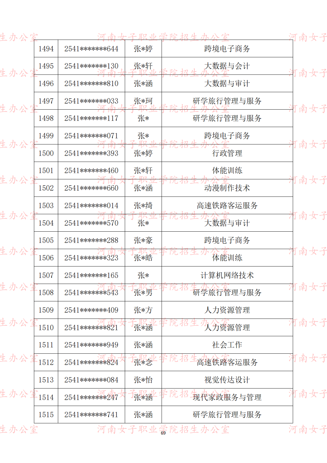 河南女子职业学院关于2025年高职单招拟录取名单的公示